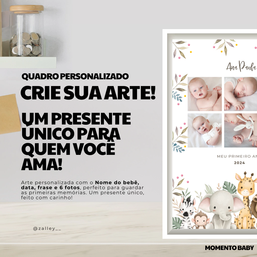 Celebre a chegada do seu bebê com um quadro personalizado que eterniza os momentos mais especiais! Este quadro é perfeito para decorar o quartinho do seu pequeno, trazendo um toque único e carinhoso ao ambiente.